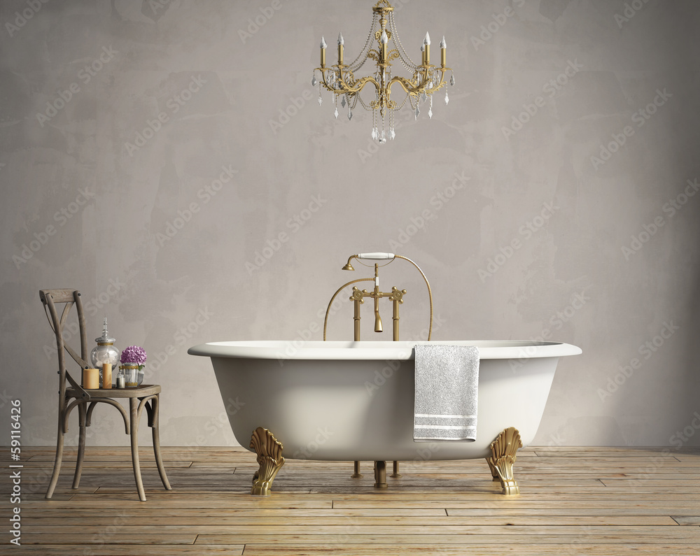 Klassische Badewanne Mit Kronleuchter Und Gealtertem