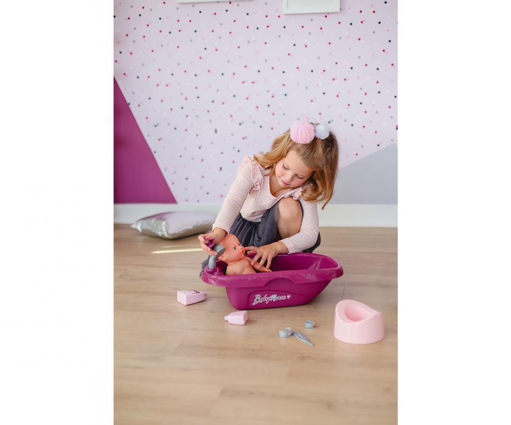 Bayer Design 73353aa Großes Zubehör Set Badewanne Für Puppen Inkl Potty Besteck Quietscheentchen Schnuller Und Pflegeprodukte Rosa
