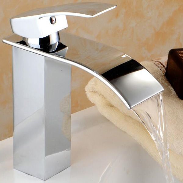Großhandel Modern Wasserfall Spout Waschbecken Wasserhahn Einziger Griff Mischarmatur Deckmontiert Badezimmer Waschtischarmatur Chrom Finish Messing