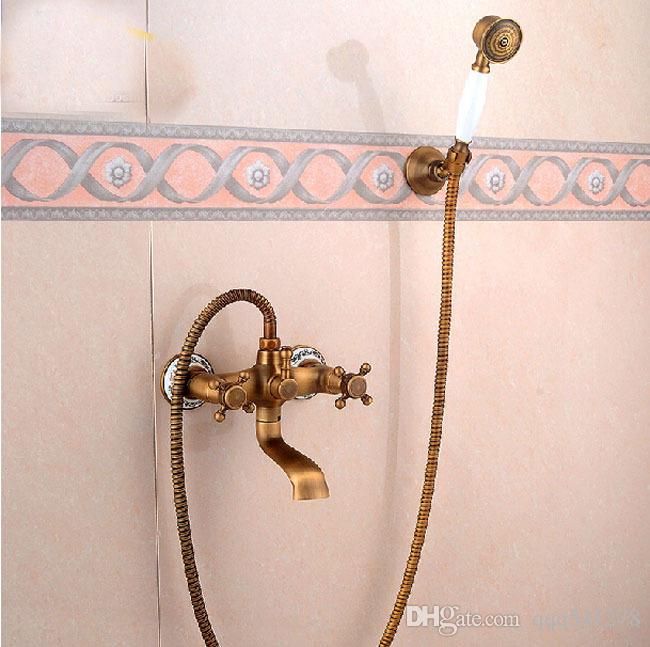 Großhandel Antike Messing Badewanne Wasserhahn Wandhalterung Heiße Kaltwasser Mischbatterie Mit Telefon Stil Handbrause Buy Badewanne